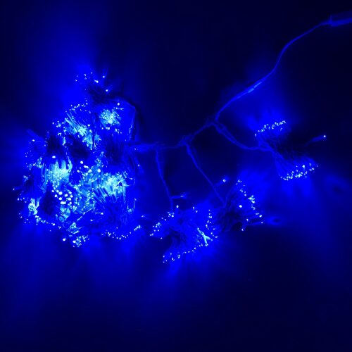 Cortina LED azul, 2m ancho, varias alturas, con alimentación