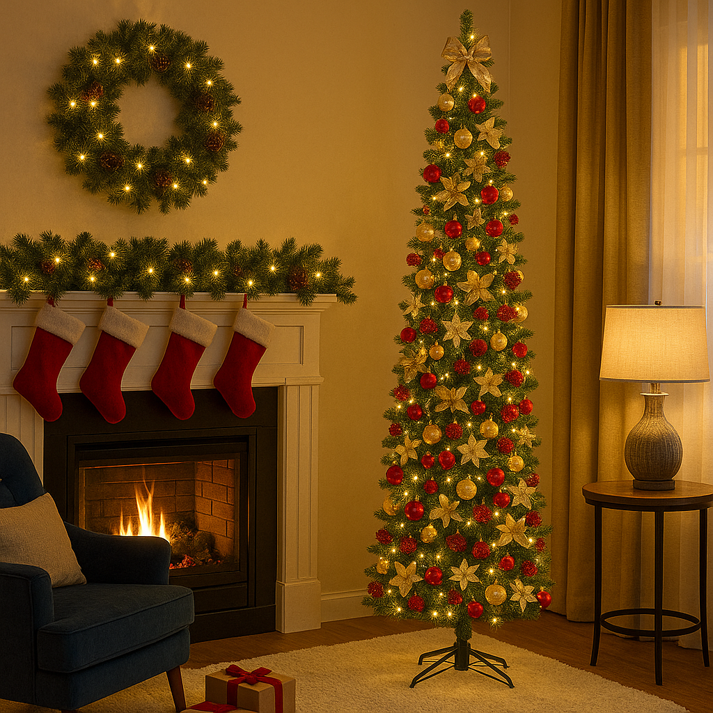 El Árbol de Navidad compacto tipo Lápiz TopLuz es la elección ideal para quienes desean disfrutar de una decoración navideña elegante sin renunciar al espacio. Su diseño estrecho y vertical permite decorar entradas, salones, escaparates, hoteles o restaurantes con un estilo moderno y sofisticado. Gracias a su estructura esbelta, se adapta perfectamente a cualquier entorno, incluso en lugares reducidos.