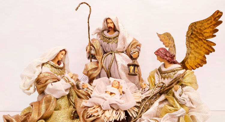 Este Belén Navidad original de tamaño real está compuesto por un conjunto de 4 figuras: San José, María, el Niño Jesús y Ángel. Su tamaño es de 25cm. Los tonos de este nacimiento son en Dorado y Blanco.