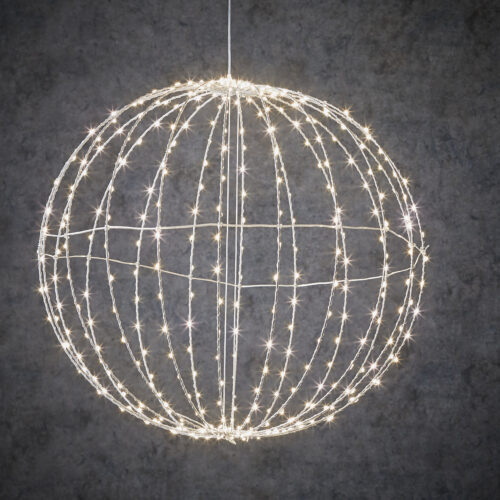 Descubre la bola LED 3D, una esfera luminosa tridimensional plegable de diseño moderno y funcional que aporta un toque mágico y elegante a cualquier espacio interior. Con un diámetro de 60 cm, su estructura metálica plateada y ligera está recubierta por 400 microLEDs de luz cálida fija, proporcionando una iluminación uniforme y sofisticada ideal para crear ambientes acogedores.