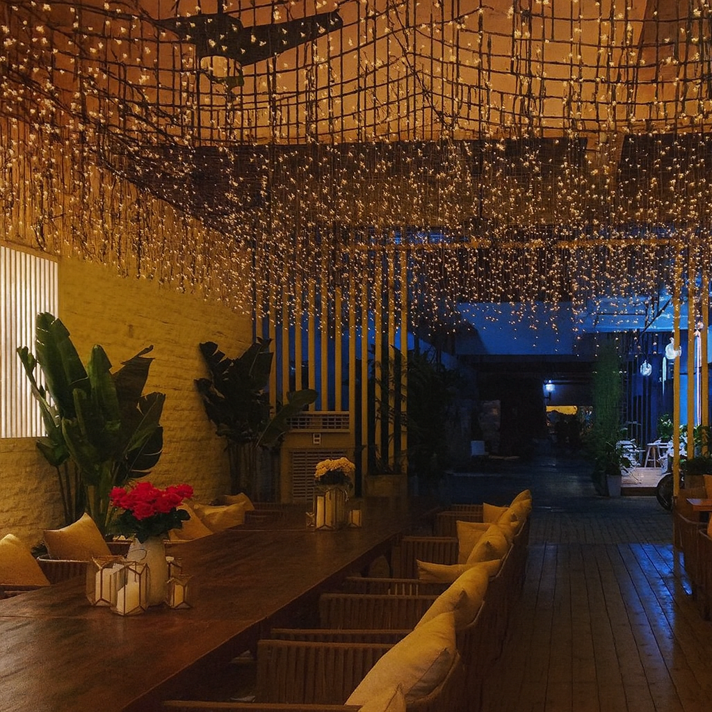Debido a sus varias posibilidades de instalación, el uso de la Cortina led cálida de Luces Exterior se está popularizando además como luz decorativa ambiente, tanto para interiores como en exteriores. Utilizándose mucho en restaurantes para eventos especiales como bodas, comuniones, eventos navideños, etc. Actualmente, es muy común encontrarlas en diferentes instalaciones fijas como decoración luminosa en balcones, ventanas, salones, terrazas, jardines…