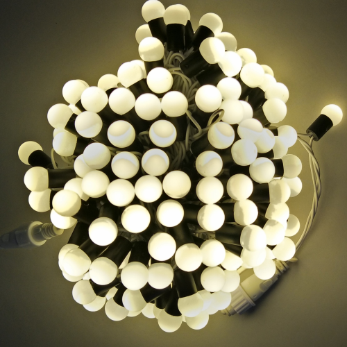 Guirnalda de Luces LED Bolas Exterior 10 m o 20 m – Blanco cálido, Cable Blanco, IP65 Profesional