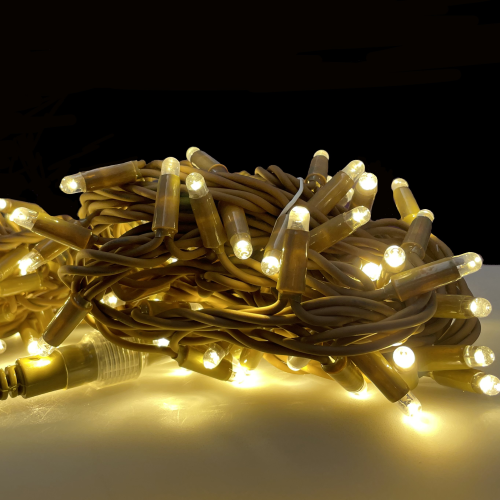 Guirnalda de Luces LED Exterior 12 m en 3 Tramos, cable marrón – Luz Cálida, Fría, Ámbar, Profesional