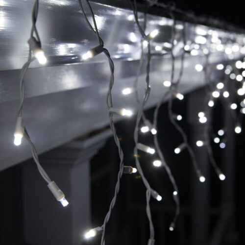 Las cortinas Icicle LED destacan por su alta luminosidad, bajo consumo energético y gran durabilidad. Su sistema modular permite enlazar fácilmente varios tramos para cubrir grandes superficies, fachadas o estructuras exteriores.