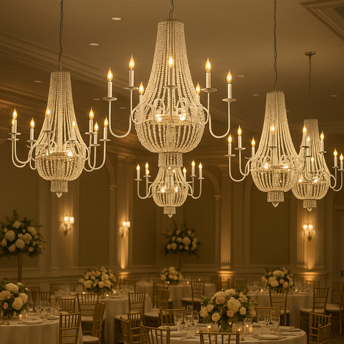 Añade un toque de lujo y distinción a tu evento con nuestras lámparas de led. Están diseñadas para ofrecer el aspecto de cristal sin el peso ni el riesgo de rotura. Perfectas para iluminar bodas, estas lámparas combinan belleza y funcionalidad, creando una atmósfera cálida y acogedora para tus invitados. Aportando también un toque de lujo y sofisticación.